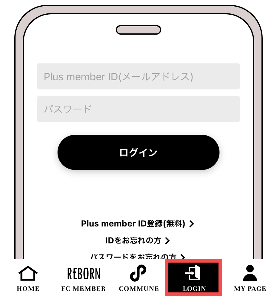 IS:SUE 公式アプリをインストール後、LOGINタブをタップして登録で使用したPlus member IDでログインし、COMMUNEタブよりご確認ください。