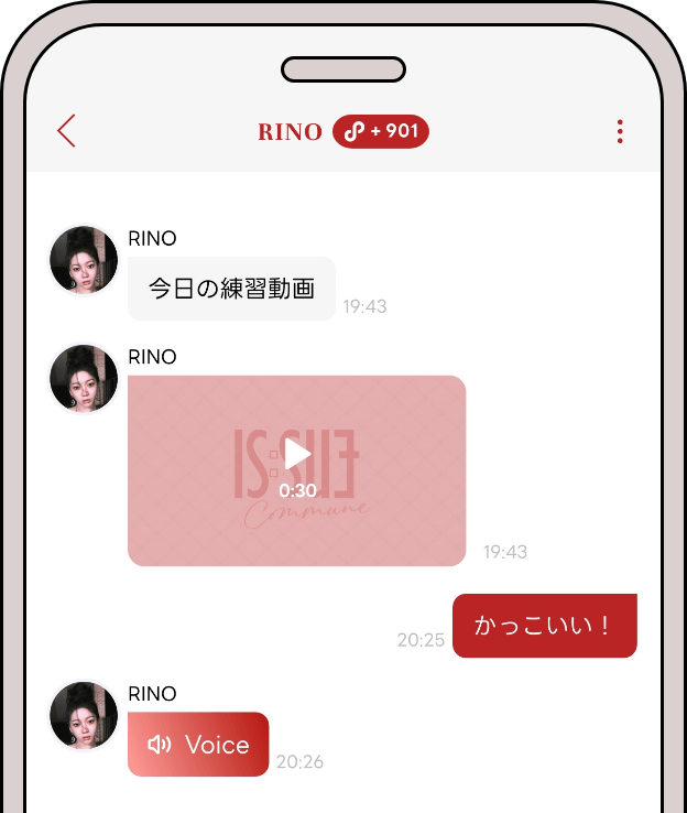 メンバーからメッセージや写真、動画、音声が送られてきます。