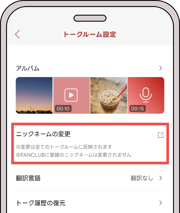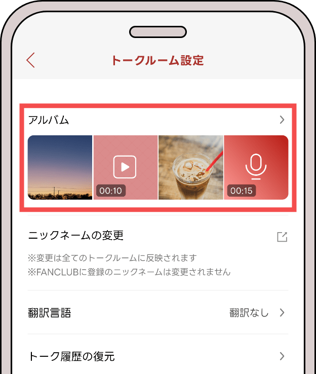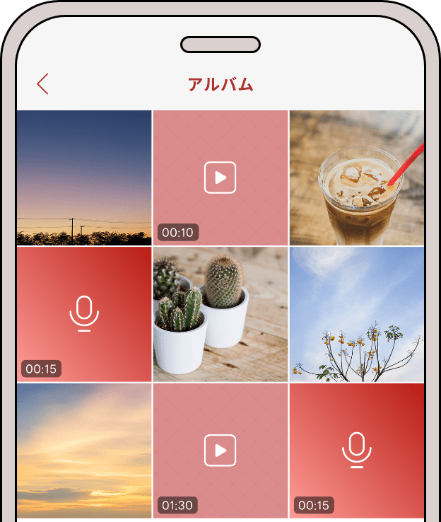 メンバーから届く写真・動画・音声がアルバムに保存されます。
